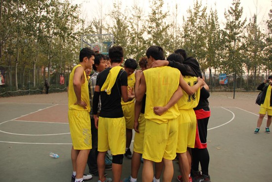 2013年11月5号下午,由学校组织的“迎新杯”建工男篮小组赛第二场在学校篮球场进行,在球场上,球员们正在做着热身活动,三点二十分比赛正式开始。