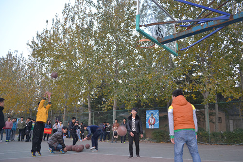2013年11月14日下午四时三十分,山东英才学院在篮球场进行了校园吉尼斯活动之篮球罚球。