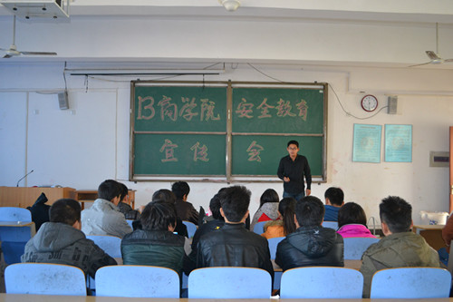 2013年11月15日下午4时30分学生会成员在4009召开关于安全教育月的宣传活动。
