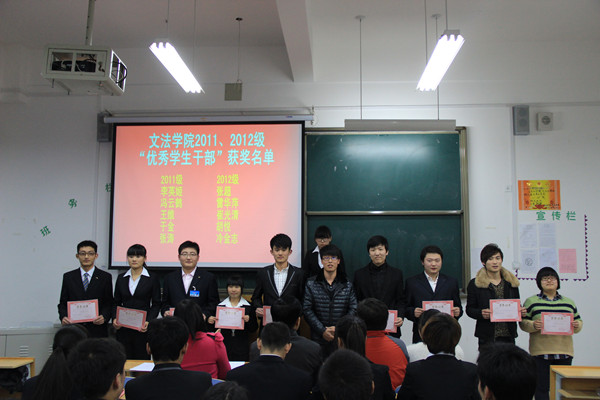 2013年11月17日晚,是文法英才迈过了又一年的工作的总结时。在这里,我们进行了新一届团骨干的任命及对上一届的优秀同学给予表彰的文法全员大会,在这里,我们见证的是光辉岁月,在这里,我们期盼的是美好的明天。