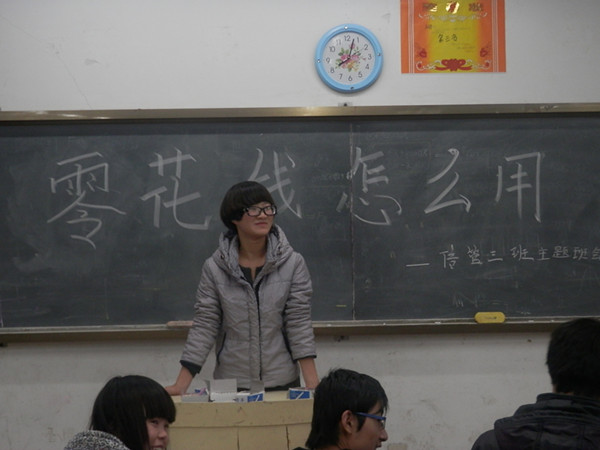 为了使同学们能合理的使用自己的零花钱,把零花钱用在应该用的地方,2013年11月19日晚8时信息工程学院信管三班在B楼1027室举行主题班会活动。本次班会的主题是“大学生应该如何使用自己的零花钱”,信管三班全体成员参加了此次班会。