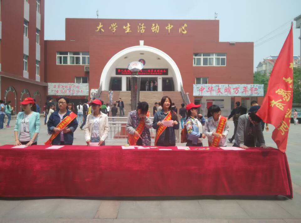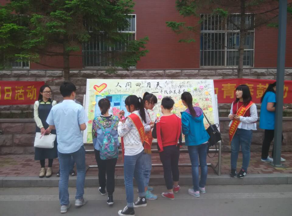 4月29日,山东英才学院志愿者协会在大学生活动中心前举办了一个寻找校园最美善举的特色活动。