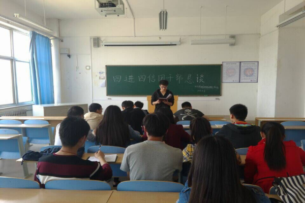 2015年4月经济管理学院基层团委、学生会开展了以学习宣传贯彻习近平总书记系列重要讲话精神“四进四信”为主题的团干恳谈,学生会各团学干部参加了此次会议,旨在通过对讲话精神的学习宣传和贯彻,进一步增强对学习宣传贯彻讲话精神的重要性、必要性、战略性的认识,更加自觉地以讲话精神武装我们青年学生头脑、指导团学工作实践、推进各项工作开展。