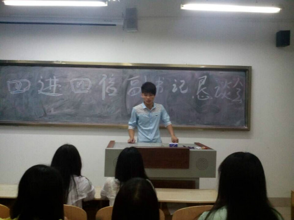 为了使同学们更加深入贯彻的了解习近平总书记自十八大以来在不同场合发表的一系列重要讲话,外国语与国际交流学院基层团委副书记贺化龙开展了“四进四信”活动,为基层团委全体成员讲解了了“四进四信”的含义以及习近平总书记一系列重要讲话的精神宗旨,引领着广大学院骨干成员和同学们深入的去了解和运用习总书记的讲话精神。同时,根据大学生的实际情况,副书记贺化龙还组织同学们进行讨论、学习及运用,使得同学们更近一步的了解何为“四进四信”以及更深的理解习近平总书记的重要讲话精神,进一步的帮助大学生牢固对党的科学理念的信仰,增强了大学生对党和政府的信任以及对以习近平同志为总书记的党中央的信赖。
