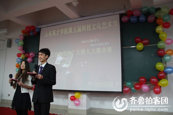 为丰富校园文化,寻找校园优秀主持风采。 11月19日下午5点 由文法学院承办的第五届校园科技文化艺术节“先锋杯”金话筒主持人大赛总决赛楼B-100举行。本次大赛的评委嘉宾有文法学院辅导员张超老师,校学生会副主席吴重、经济管理学院基层团委副书记、学生会主席田萌春、园林学院学生会主席杜丽等。经济管理学院王朋、段丁芳、胡文静等代表参与比赛。