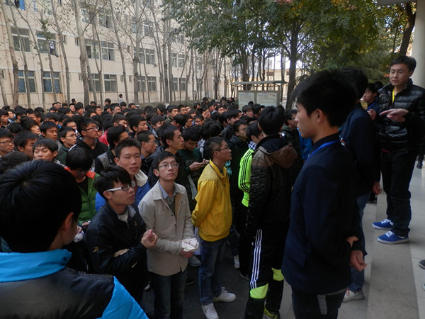 2013年11月19日中午12时信息工程学院全体师生在7号楼开展了消防演练活动。活动开始前,基层团委书记米晓青老师向同学们介绍了此次活动的意义和活动流程。在负责人的一声令下,同学们开始从宿舍楼中安全撤离,撤离过程中同学们纷纷用毛巾遮住自己的口鼻,弯着身子,迅速且有序。辅导员老师和主要学生干部在楼道两侧及大厅进行疏导。此次消防演习活动没有发生任何混乱及踩踏事件,且在撤离中充分体现了同学们团结互助的高尚精神。前面的人跑不动时,后面的人马上去搀扶着,一起向外跑。400余名同学共计用时5分钟。待同学们全部撤离到集合地点后,崔兆勇老师对此次消防演习进行点评,说明了火灾的危险性及消防演习、火灾预防的重要性。并在最后宣布此次消防演习圆满成功。