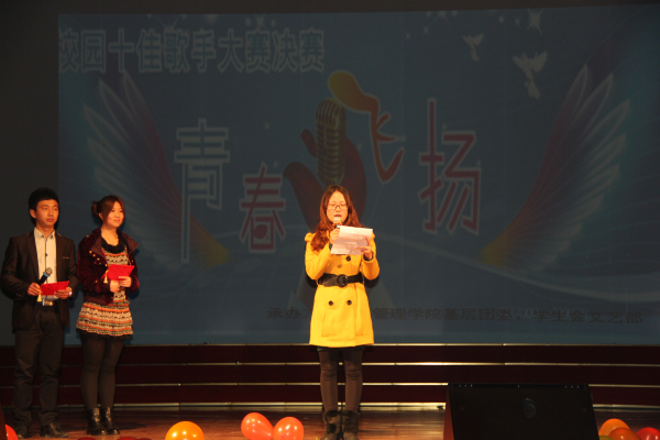 舞动音符,个性飞扬。2013年11月22日17:00,经济管理学院第五届科技文化艺术节校园歌手大赛决赛在大学生活动中心隆重举行。出席本次大赛的评委有经济管理学院基层团委书记王鹏飞,经济管理学院专职团干杨淑老师,优秀辅导员白雪、张超以及各二级学院学生会主席、社团组织负责人和1000多名在校学生们。