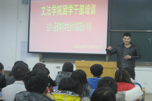 11月21日中午,文法学院基层团委、学生会、宿管会第三次干部培训在图书馆407教室如期举行。