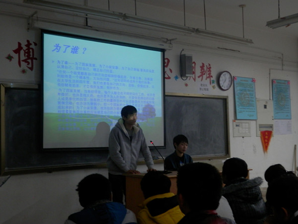 为了提高让学生能更好的认清自己,履行自己的任务。信息工程学院于2013年11月25日晚7时30分在b楼1022室举行“为了谁,依靠谁,我是谁”团支部恳谈会。参加此次会议的人员有信息工程学院院长赵院长及信息工程学院13级计算机及应用普本2班的全体同学。