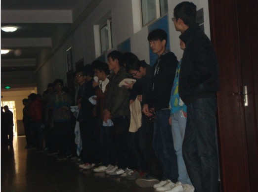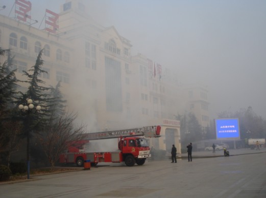 2013年11月22日,汽车工程学院2013级全体同学在A楼参与山东英才学院保卫处组织的消防演练活动。