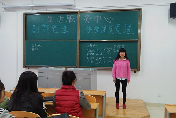 首先是由生活服务中心的主任高璇简洁明了的总结了生活服务中心最近工作上出现的状况,并提出一些建议。接着进入本次会议重点,后勤保障部部长王莹莹宣布“五四优秀团员竞选”和“副部竞选”。刚一宣布,竞选者们开始做好自己上台演讲的准备。首先是很有勇气与信心的张紫嫣,她慷慨激昂的演讲,博得了办公室的干事们的一致认同,接着是教室管理部的周荣荣、鞠岩君、胡龙梅和王振,他们充满激情的演讲博得了台下的阵阵掌声,当然也属他们的竞争最为激烈。最后出场的是来自后勤保障部的竞选者们,他们的竞争虽然没有教室管理部的那么激烈,但也是有条不紊的进行着。最后的竞选结果是:办公室副部为张紫嫣、周相君;教室管理副部为王振、邢丹枫;后勤保障副部为张安近、于蒙洁;优秀团员为张紫嫣、周荣荣、鞠岩君、张安近、黄辉花。竞选成功的同学将承担更多责任,也能得到更多锻炼,希望他们积极为生活服务中心做贡献,让生活服务中心的工作达到一个新的高度。