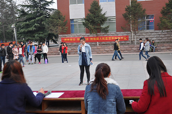 为丰富大学生的校园文化生活,营造积极向上、百花齐放、格调高雅、健康文明的校园文化氛围,展示我校学子蓬勃向上的精神风貌,激发广大学生热爱艺术、勤奋学习、努力成才的热情与动力,不断提高自身素质,山东英才学院“音为梦响,非唱不可”、校园“十佳”歌手大赛选拔赛于2015年4月8日下午五点在大学生活动中心前激情开唱。