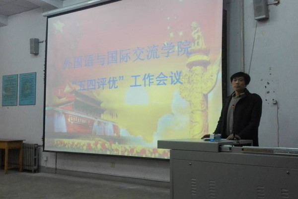 为了更好地发挥共青团组织和青年团员的先锋模范作用,外国语学院基层团委积极响应院团委五四评优文件通知,4月9日中午召开了五四评优工作部署会议,参加会议的有外国语学院基层团委书记祝景朋,外国语学院基层团委、学生会主要学生干部、各团支部书记和班长。