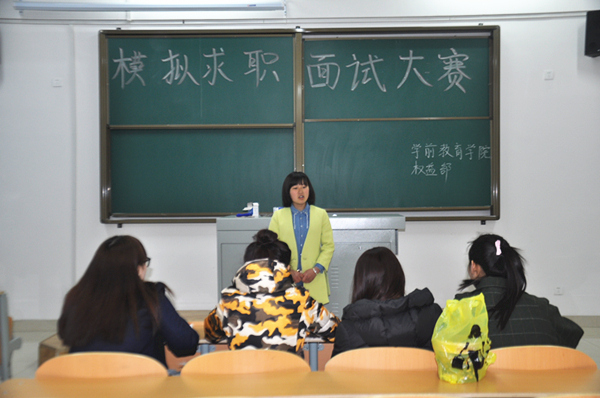 为了提高学生的自身素质和求职能力,毕业后积极灵活面对招聘,2015年4月12日下午3点,由学前教育学院学生会权益部举办的“模拟求职面试大赛”在学前楼6012教室顺利进行。学生会主席李林、新媒体中心部长谢小娇、外联部部长李雪、权益部部长王棋作为模拟求职面试中的面试官出席此次大赛。