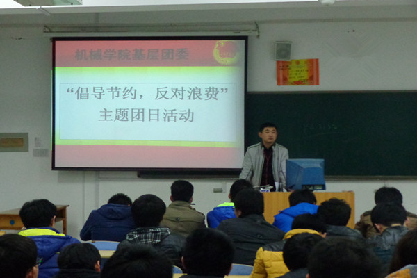 为进一步弘扬中华民族勤俭节约的优秀传统,机械学院基层团委学生会积极响应学院号召,于11月26日在实训南楼4012开展“倡导节约反对浪费”主题团日活动。参加本此活动的有机械学院基层团委刘阁书记、各副书记、学生会主席团成员以及各部门部长、副部长。