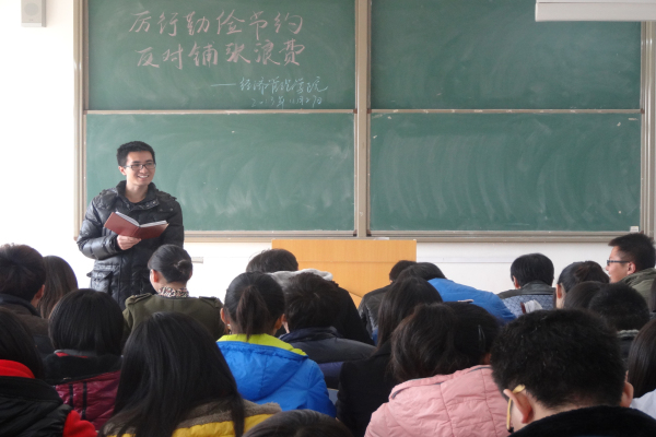 为健全大学生思想道德作风体制,增强大学生道德修养。2013年11月27日中午11:30,经济管理学院基层团委、学生会在教学楼B-402教室开展以“厉行勤俭节约,反对铺张浪费”为主题的会议。经济管理学院基层团委、学生会主席田萌春,副书记刘丰吉,各部门正副部长以及各团支部书记参加本次会议。会议由田萌春主持。