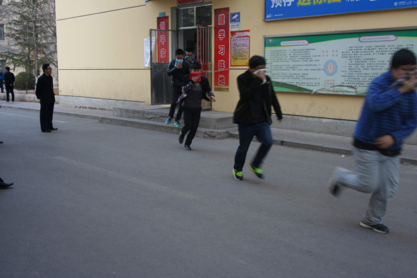 此次逃生演练由基层团委书记刘阁担任指挥。演练伊始,刘书记首先强调了演练的目的、过程中的安全注意事项及要求,然后详细的安排了各项任务。随后各辅导员向同学们详细的讲解了安全防火、预防火灾和发生火灾等的应对能力和正确的灭火方法,使每个学生初步掌握正确的逃生知识。紧接着便进入逃生演练阶段,同学们有序的进入演练建筑物内等待号令。在所有人员完全就绪后,孔院长发出“演练开始”的指令,每个学生在疏散过程中手持毛巾捂住口鼻,在各位老师和同学们的密切配合下全体师生近1100余人,历时12分钟安全到达指定地点“成功逃生”。最后由各班级辅导员针对本次演练进行了总结讲评,逃生演练活动圆满结束。