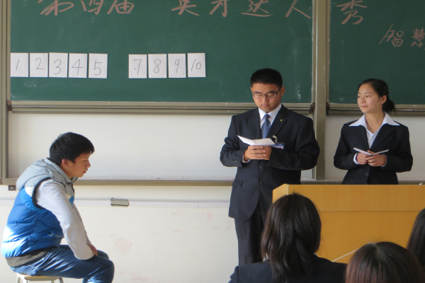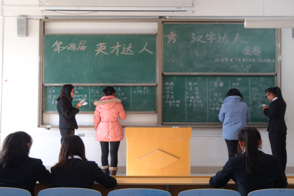 比赛正式开始,主持人先介绍了每项比赛的比赛规则,并回答了选手们的疑问。接着,紧张的比赛马上开始了,在节奏达人比赛中,从初赛脱颖而出的选手们个个都整装待发,在比赛还没开始之前,大家都拿着手机积极地准备着,比赛正式开始后,选手们在一场无声无硝烟的战争中激烈的比拼着,很快便决出了胜负,最终5名选手成功晋级决赛。紧接着的比赛是智慧达人,比赛形式从笔试答题升级到了上台现场答题,题目涉及到了各方面的百科,考验了选手们的智慧和心态,选手们轻松的心态和幽默的回答将比赛现场的气氛活跃了起来。在最后一个比赛汉字达人中,考查形式也从试题形式上升到轮流上黑板默写,默写内容既有词语也有成语,这样更加考验了选手们的心态和默写能力。比赛结束后,策划室副主任胡崇芳分别对本次复赛中的三个比赛做了总结并对选手们提出鼓励,希望能决赛中看到大家更好的表现。