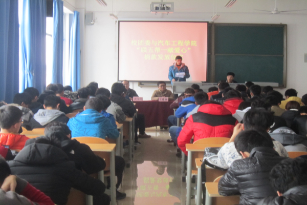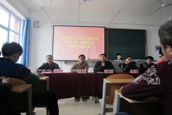 在山东英才学院团委及各部门的号召下,汽车工程学院于2015年1月16日星期四在汽车工程学院教学楼召开“联五帮一”贫困生补助活动。我院13、14级学生于11:40进场入座。这次大会由大院团委和汽车工程学院团委联合举办,由武玉兴院长和其他四位老师主持。