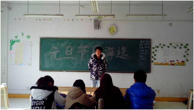 2013年11月26日中午11:30,为准备我校元旦晚会,如火如荼的元旦节目选拔在教学楼c楼5007举行。