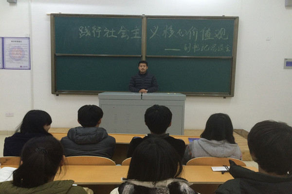 社会主义核心价值观的根本特征是实践,生命力在于实践。培育和弘扬社会主义核心价值观贵在于知行合一,而且要行胜于言。践行社会主义核心价值观,要认知认同基础上的身体力行。高书记强调,要找准切入,设计载体,切实推动社会主义核心价值观学习取得实效。要把践行社会主义核心价值观与学习贯彻第三次党代会精神结合起来,认真学习党代会精神,凝聚全校师生的力量,为加快建设特色鲜明高水平应用型大学而努力奋斗。要把社会主义核心价值观融入到校风学风建设当中,引领广大学生勤奋学习健康成长。要虚功实做,把社会主义核心价值观与工作学习实际结合起来,让广大学在实践中去感悟、践行社会主义核心价值观。