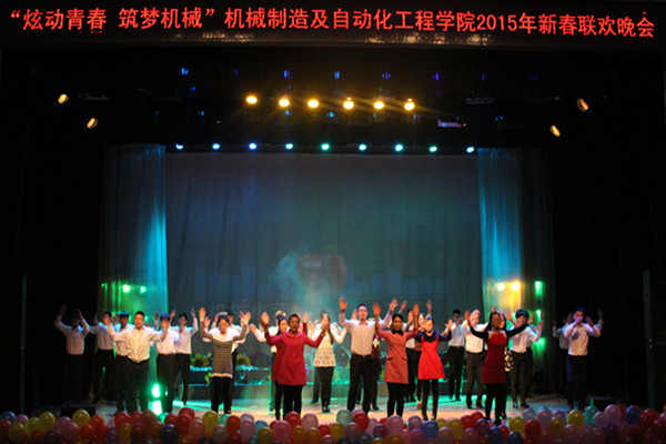 晚会以“炫动青春,筑梦机械”为主题,整场晚会分为“青春机械”、“炫动机械”、“筑梦机械”三个乐章,演出在开场舞《欢聚一堂》喜庆、祥和的氛围中拉开了序幕。以“青春机械”为主题的第一乐章中,2012级学生代表一首深情的歌曲《我们好像在哪儿见过》展现了人们在经历爱情之后的沧桑心态,恰恰也因为命运的相遇、重逢,使得人们对于真挚的感情愈发珍惜、愈发向往;14级三班的同学们献上舞蹈《Hight light》将晚会带入了欢乐青春的氛围中;小品《我是“大导演”》幽默诙谐的语言和表演给我们观众留下了深刻的印象和阵阵掌声。在小品的欢声笑语中我们进入了第二篇章“炫动机械”,全场的同学们的热情也已被演员们带动起来,场内一片新年的气氛。吉他弹唱《平凡之路》引发了观众的一阵阵掌声,将晚会推上了高潮;机械学子的武术表演更是展现了机械男儿的霸气与青春活力;机械学院基层团委、学生会的团学骨干代表的自编舞蹈《雷人舞》将晚会再次推上了高潮,拼凑的搞笑音乐,演员搞怪的动作,嗨翻了全场。我们在为他们在台上活力四射表演喝彩的同时,也为他们在团学工作中的默默付出鼓掌;小品《重修班的故事》,用我们最熟悉的课堂场景,最质朴的语言,告诉我们好好学习,丢弃毁掉自己的陋习,做一名优秀的学生;伴随着《为梦而生》激情飞扬的歌声,我们进入了晚会的第三篇章“筑梦机械”,鬼步舞《曳舞青春》给我们展现了青春的活力;朗诵《青年颂》带给我们斗志昂扬、奋勇向前的心态,鼓励青年学生要勇于追梦;机械师生共舞的《机械小苹果》,体现了老师们的青春,同学们的活力,呈现给我们师生欢聚一堂的美好景象。晚会最后在《相亲相爱》激扬的歌声中落下了帷幕。