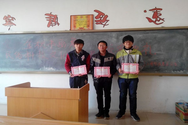 本届民俗科技文化艺术展与金秋书画展是有史以来参赛作品最多,涉及题材最广的一次盛宴。为表鼓励分别设一等奖1名、二等奖2名、三等奖3名,共计有12件优秀作品获得最后表彰。颁奖典礼在副书记张运清的主持下有序进行,由办公室主任崔进一一宣布获奖名单,学习科技部部长赵亚雄与社会实践部部长宁帅为获奖同学颁发荣誉证书。证书颁发完毕,副书记张运清做出总结,希望参赛同学要一直保持这种状态,积极参与各项团学活动,并发动班里其他成员参与其中,让同学们发挥自己长项的同时为学院争得荣誉。典礼最后各位获奖同学现场气一一合影留念,气氛活跃,取得了圆满成功。