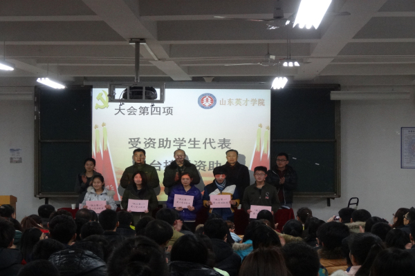 紧接着大会进行第四项,2015年“联五帮一”受助学生代表上台领取资助金。接着,2013级财务管理专业的受助学生代表唐英强同学代表全体受资助的同学发言,唐英强同学通过讲述自身的生活学习经历以及学院通过“联五帮一”对他的帮助。言语之中流露着他对学院的感谢,并且表示以后将更加努力学习回报学校。最后,大会在嘹亮的《英才之歌》声中圆满的落下帷幕。