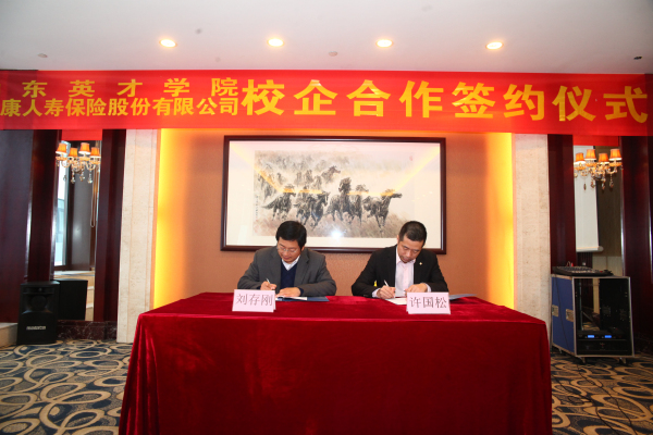 2013年12月6日 我校与泰康人寿保险股份有限公司签约仪式在山大学府交流中心会议厅举行隆重举行。学校副院长王兆良教授、副院长刘存刚博士、就业指导与校企合作处处长乔晓萍、经济管理学院副院长李众宜副教授、副院长杜志玉等校方代表与泰康人寿保险股份有限公司山东分公司人力资源部许国松总经理、李瑶晖总经理、招聘主管韩发森等企方代表共同出席签约仪式,签约仪式由乔处长主持。