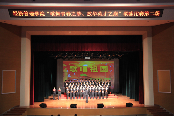 青春飞扬,歌声如此嘹亮。为提高学生爱国爱校意识,丰富大学生课余文化生活。2013年12月5日中午11:30,由经济管理学院基层团委、学生会社会实践部承办的校园歌咏比赛在大学生活动中心唱响青春的旋律。担任本次比赛的十位评委分别是:院团委办公室行政秘书徐宜慧和王栋栋,各年级主任张浩、孙钰、马翠平,基层团委书记王鹏飞及经济管理学院基层团委、学生会主席团四位成员。