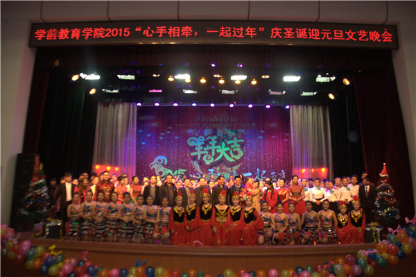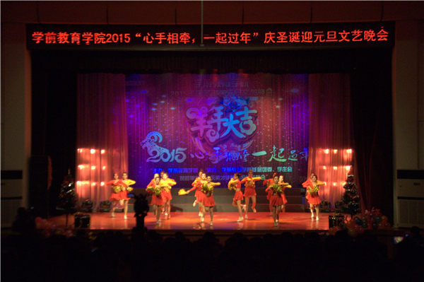 12月25日18时,学前教育学院“心手相牵,一起过年”庆圣诞迎元旦文艺晚会大学生活动中心隆重上演。正值佳节时分,师生们欢聚一堂,载歌载舞,共庆新年的到来。出席晚会的有学院学工部部长龙新良、宣传处副处长孙玉山、医学院副院长郭传祯、机械学院副院长孔祥泉、经管学院副院长张永禄、外国语与国际交流学院副院长曲永存、商学院副院长高强、学前教育学院院长陈文华教授、行政副院长郑雯、就业副院长于森林等领导,与我院学生共同观看了本次晚会,大家都从晚会中感受到了浓厚的节日气息。
