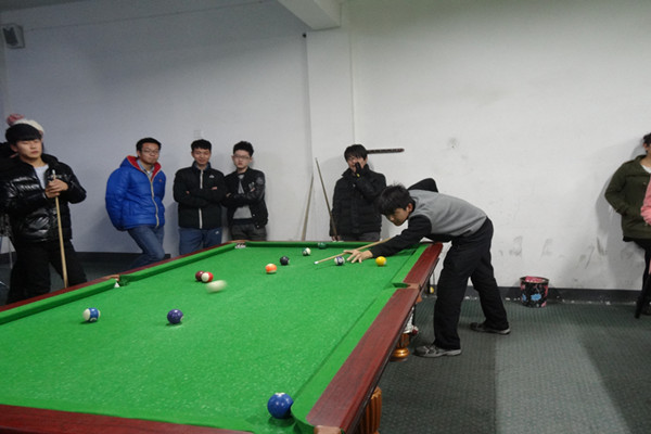 为了活跃校园气氛,增进学院同学间的友谊,丰富学生的课外生活,让同学们“走出宿舍、走下网络”,投入健康的体育活动中,经济管理学院外联部于12月26日在北校区商业街“365”健身房举行台球大赛初赛。学校的老师同学积极参与到其中。