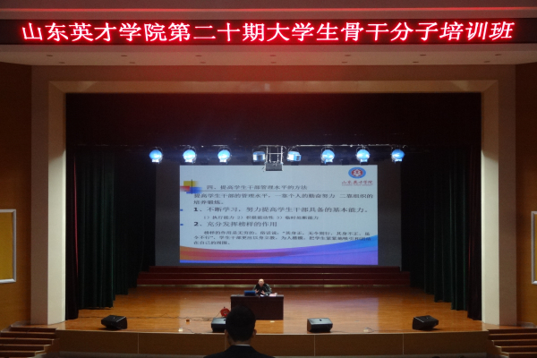 为提高学生干部管理水平,加强团学队伍建设,培养学院优良骨干。2013年12月9日中午12:00,山东英才学院在北校区大学生活动中心成功举办了第二十期团校培训暨大学生骨干分子培训活动。北校区全体专职团干部及北校区900余名学生骨干分子作为培训对象参加本次培训活动,经济管理学院行政院长王广柱就“如何提高学生干部的管理水平”展开本次培训活动。
