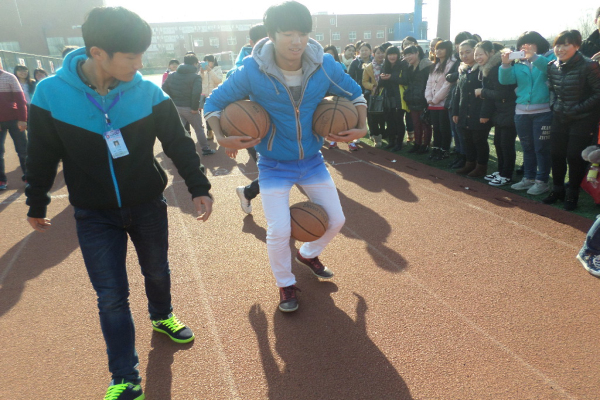 本次活动由五部分组成,以接力赛的形式在各班之间进行激烈比赛。第一部分是单杠吃饼干,活动充分考验同学们的身体素质;第二部分螃蟹运球考验了两位同学之间的默契配合、互相协作的能力;第三部分瞎子背瘸子充分体现了同学们在视野黑暗的情况下对方向的判断和与同伴之间的配合程度;企鹅漫步则是用身体夹住篮球向前走考验了身体的平衡能力,最后一部分为集体跳大绳,由八名同学站在绳内,共同跳十次为完成比赛。比赛过程中,参赛队员积极、投入、互相配合的完成比赛项目,在欢呼呐喊声和加油声中享受着比赛,场上气氛热烈,高潮迭起,趣味横生。最后,在全场的欢呼声中,本次活动取得圆满成功。