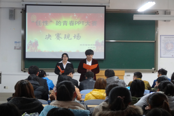 为使当代大学生与科技力量接轨,追随与时代共进的新生力量。经济管理学院基层团委、学生会生活部于2014年12月19日在教学楼B-406教室举办PPT大赛决赛。到场评委有基层团委、学生会副主席李扬扬,办公室主任陈孝树等六位,到场人员为成功晋级的12位选手及他们的亲友团们。