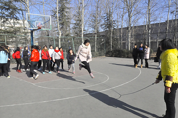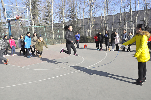 2014年12月21日中午12时,由学前教育学院体育部组织“跳跃的青春”集体跳绳比赛决赛在篮球场如期举行。为丰富校园文化生活,促进校园和谐发展,增强学生的体质,增进各班同学之间的友谊,凝人气,聚力量,学前体育部为学前教育学院全体大学生提供了这样一个张扬个性,互动交流的平台――集体跳绳比赛活动。