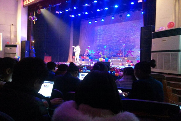 观众们的情绪一直维持在高潮部分,其中自律会成员们的一些反串角色,如:王母娘娘及其身边的两个丫鬟的反串,还有小品中母亲的反串等让观众们的情绪持续高涨,其中还有主持人的一首《红日》,优美的旋律,与甜美的歌声,让观众们一饱耳福。