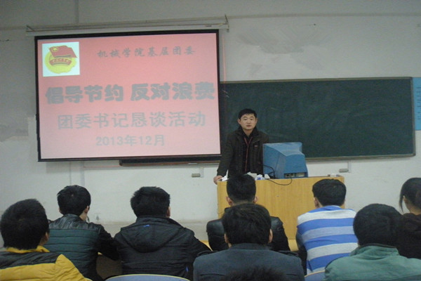 为进一步弘扬中华民族勤俭节约的优秀传统,机械学院基层团委、学生会积极响应学院号召,于12月11日在实训南楼4012开展“倡导节约 反对浪费”书记恳谈会。参加本此活动的有机械学院基层团委刘阁书记、各副书记、学生会主席团成员以及各部门部长、副部长。