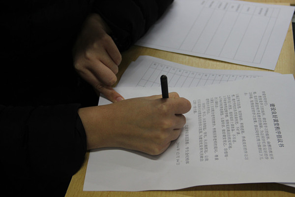 为了建设良好的课堂秩序,形成良好的班风学风,防止大学生学习过程中出现学习懈怠的情况,文法学院于2014年12月14日18点,在学院各班发起“遵守课堂纪律,由我做起”的倡议书签名活动。