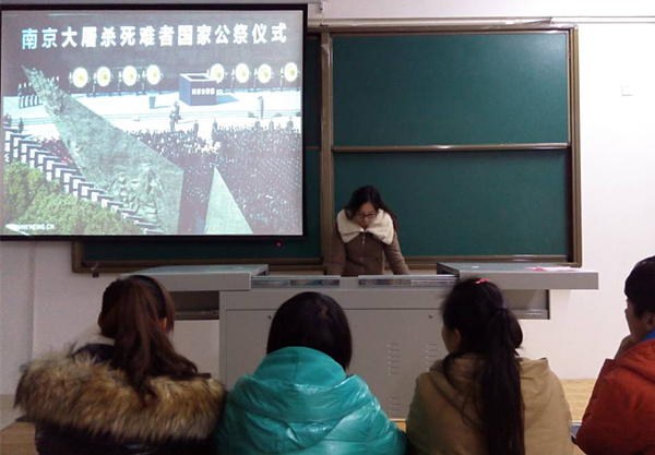 为更好的对当代大学生进行爱国主义教育,山东英才学院学前教育学院积极响应团省委的号召,在12月13日当天开展了有关南京大屠杀首个国家公祭日的一系列线上以及线下的校园文化活动。