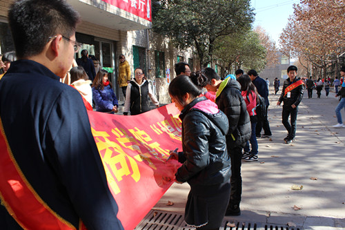 经过生活部与卫生部人员的简单协调之后,将长度为7米的横幅在二号餐厅门口拉开,在广大部员的简单发动下,路过餐厅门口的师生纷纷在横幅上签下自己的名字,他们认为该活动举办的十分有意义,并积极响应。倡导节约,反对浪费的签字活动,主旨意在节约,作为大学生,我们更应该从身边出发,提倡节俭。