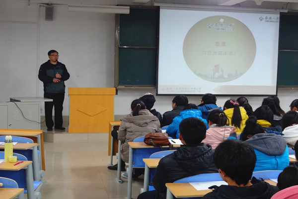为加强学校与企业的合作交流,提高学院学生社会适应性能力,更好实现当代大学生课堂理论与实践经验的完美结合,2013年12月16日下午18时,经济管理学院与烟台LG浪潮、泰康人寿两家公司共同开设的校企合作班正式开课。烟台LG浪潮人力资源部徐建忠经理和泰康人寿保险股份有限公司山东分公司人力资源部韩发森经理分别作为工商管理本科班和财务管理本科班的首次开课企业导师。