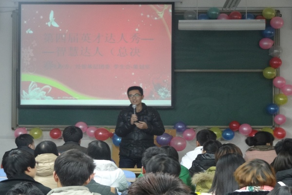 生活处处有智慧。由经济管理学院学生会策划室举办的英才达人秀之智慧达人决赛于2013年12月17日在教学楼B-302教室展开。出席本次大赛的嘉宾有基层团委副书记田萌春、办公室主任齐放以及策划室主任郑文炜等。