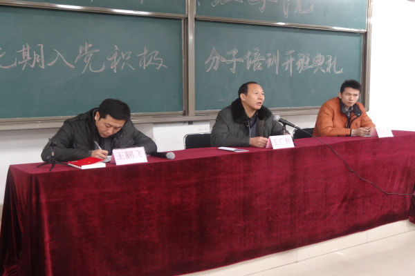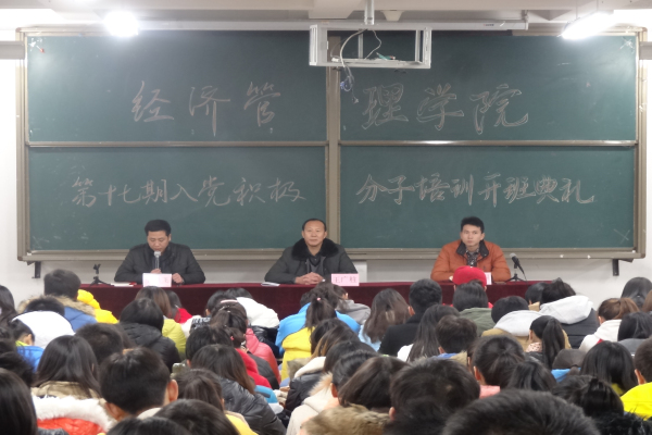 新时代,新要求,力求上进,向党组织靠拢。2013年12月23日中午12点,经济管理学院第十七期入党积极分子培训开班典礼在教学楼B-100正式展开。经济管理学院党支部副书记王广柱、学生党支部组织委员兼纪律委员吕孝围出席典礼,经济管理学院全体入党积极分子参加此次典礼。开班典礼由经济管理学院学生党支部书记王鹏飞主持。