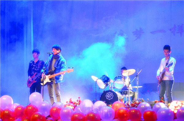在后羿乐队《想梦一样自由》的激情摇滚乐中,元旦晚会正式拉开了序幕。晚会的节目丰富多彩,乐器演奏,现代舞,鬼步,相声,小品,串烧等应有尽有。歌曲《偶像万万岁》让在场的小伙伴们再次点燃偶像梦;相声《满汉全席》和小品《男生宿舍》则逗的大家畅然欢笑;《鬼步》的精彩表演使同学们再也“吼”不住了,VGA乐团表演则是把我们入了另一个视角;导员们的《走秀》表演更是把晚会激情推向高峰。晚会现场还设置了人人墙与腾讯微博墙,现场的观众可以通过人人墙进行了互动,开启现场互动新模式。