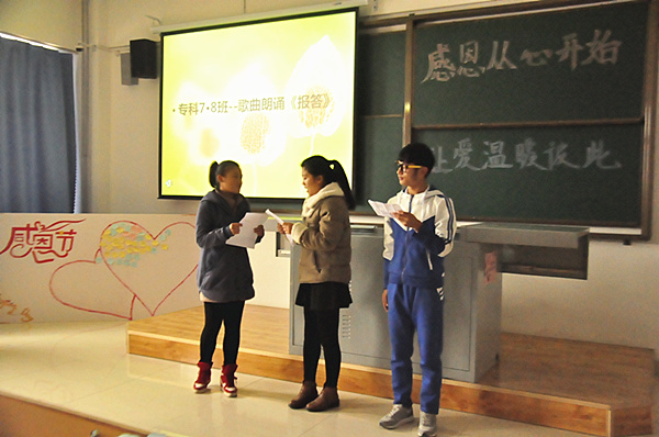 此次感恩节活动为同学们提供了感恩的便捷途径,帮助他们可以更好地感恩老师、同学和亲朋。感恩,不能只是一句口号,对父母感恩,对师长感恩,对关心自己的人感恩,对默默支持的人感恩,对跟自己不离不弃的人感恩,对为自己无私奉献的人感恩,一切都要付诸于行动中,以行动表达感恩。