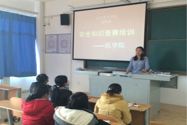 根据山东英才学院“消防安全月活动”活动――消防安全知识竞赛的要求,医学院通过辅导员推荐从在校生中选拨出十名优秀同学作为参赛队员参与活动。为了帮助参赛的学生更好地理解和掌握安全知识,增强广大同学的消防安全意识,提高防火、灭火、疏散逃生能力,全力做好灭火救援工作,医学院于2014年12月2日在2004组织开展了安全知识的集中学习培训。本次培训由辅导员冷云老师主持,