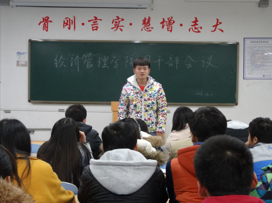 为了进一步加强学生队伍建设,提高工作能力,促进团学工作开展。12月2日晚,经济管理学院基层团委、学生会在教学楼B-507教室召开了团干部会议。基层团委书记赵昆老师,学生会主席齐放及各部门正副部长共同参加了此次会议。