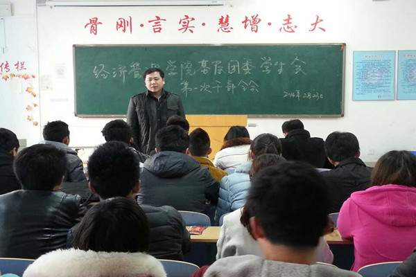 2014年2月23日14时,经济管理学院基层团委、学生会在教学楼B-507教室召开第一次干部会议。参加本次会议的有基层团委书记王鹏飞,第十二届基层团委、学生会主席团各成员以及各部门正副部长。
