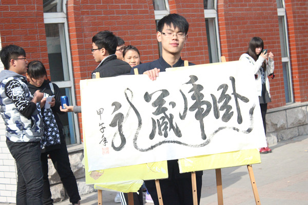 2014年11月20日中午,第六届科技文化艺术节“汽车杯金秋书画展”正式在大学生活动中心广场开展,12个二级学院推荐的近百幅作品,其中不乏富有中国传统文化特色的作品,为全院师生带来了耳目一新的文化享受。